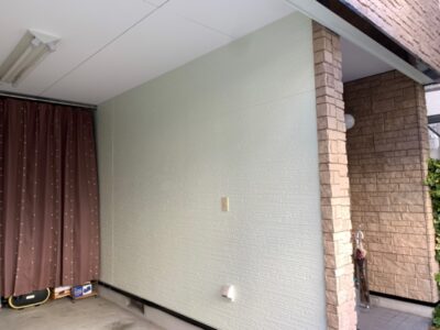 今回のお家はサイディング壁になります。壁材にあわせて使用する塗料を選ばないと密着不良などのトラブルに繋がってしまうんですよ(>_<)