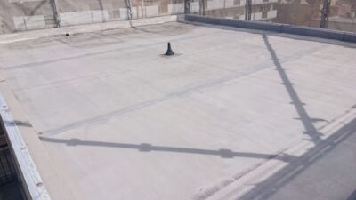 今回はすでに防水工事が施工された後の、トップコート塗替え工事をご紹介しますよ!