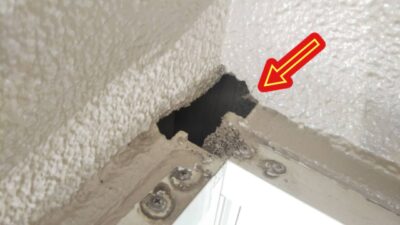 以前に窓の増築リフォームをおこなったみたいですが、その部分に大きな穴が・・・
