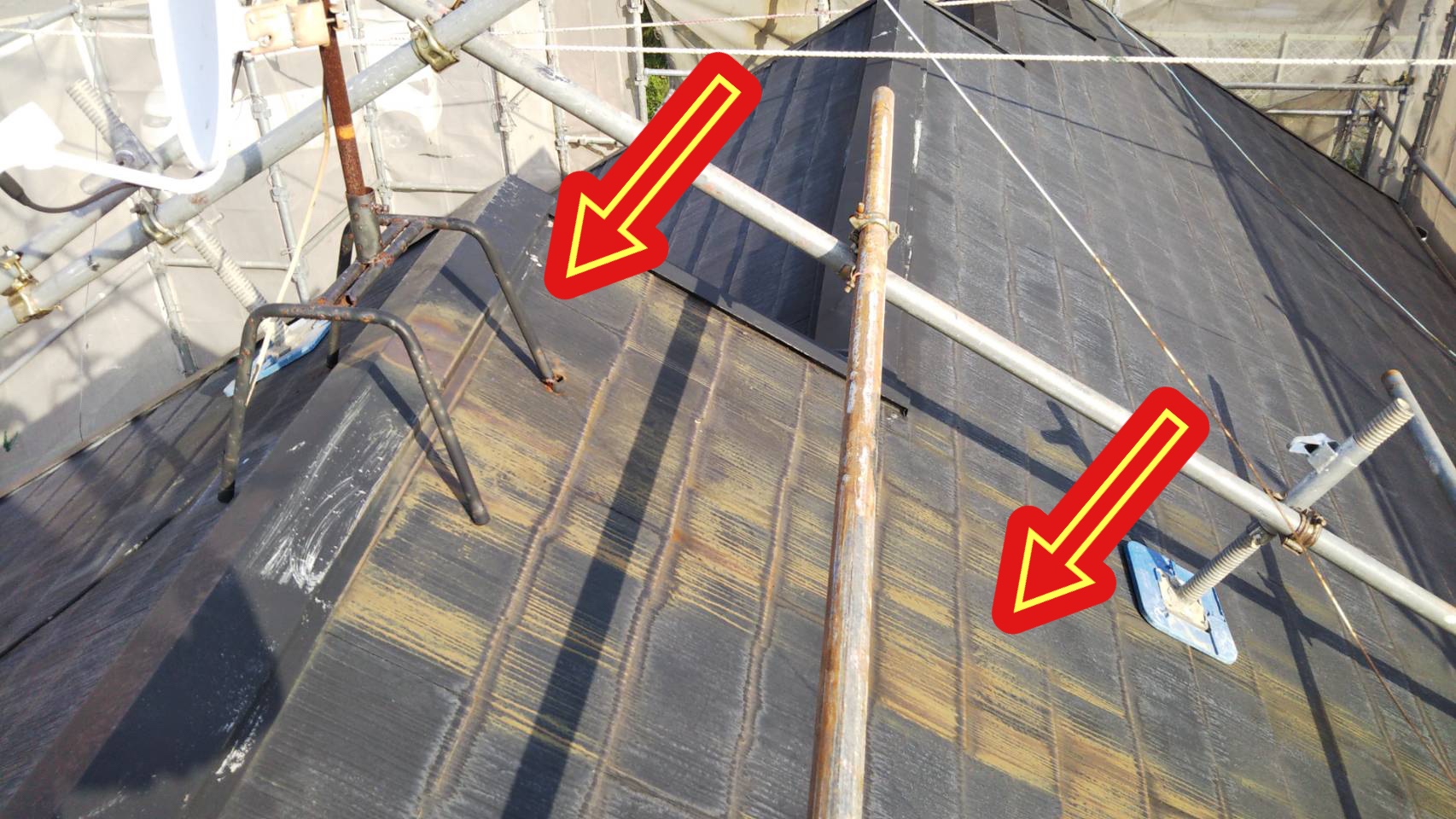 こちらが屋根設置のアンテナ架台からもらいサビが発生してしまった現場になります!